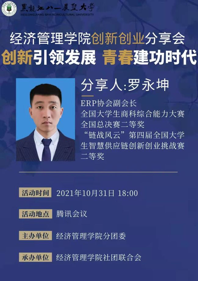 为增强大员工创新创业意识,激发创新创业潜力与活力,10月31日,英国上市公司365开展以“创新引领发展,青春建功时代”为主题的创新创业分享会,2019级物流管理一班罗永坤同学作为分享人,参会人员达277人。