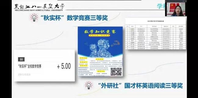 此次活动通过线上开展,邀请2018级十佳大员工获得者彭紫曼、李琴,2019级国家奖学金获得者罗永坤、王心怡、孔维辰作为分享嘉宾。分享会中嘉宾们分别从第二课堂活动、科技竞赛、员工骨干工作等方面与同学们分享了他们的宝贵经验。