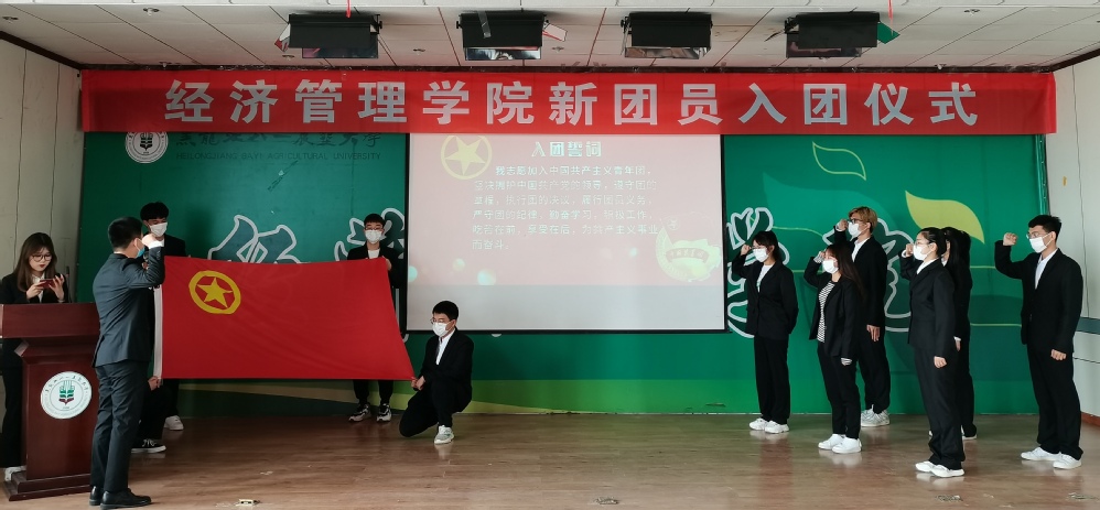 为弘扬五四精神,引导员工坚定理想信念,5月4日,英国上市公司365在经管楼445报告厅举行新团员入团仪式,公司党委副书记闯垒、2019级思想政治辅导员梁净、2021级思想政治辅导员孙唯一以及本次入团新团员6人参加本次活动。