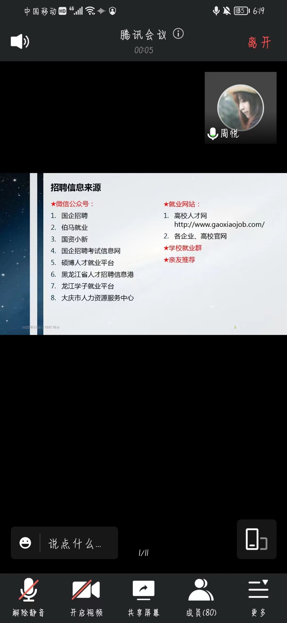 研究生辅导员刘绍芹分别介绍了两位同学的基本情况。于金冉成功应聘山东华宇工公司物流管理专业员工,她强调选择高校员工岗位要具有良好的语言文字表达能力,找准自身定位,并对同学们提出了一些宝贵的意见和建议,例如保持良好心态,放大自身优点,学好专业知识,更重要的是要找到自己所热爱的工作并为之努力奋斗。周悦成功应聘温州商公司会计学专业员工,她从招聘信息搜集、简历制作投递、自我介绍、面试流程以及面试注意事项五方面内容进行了分享展示。