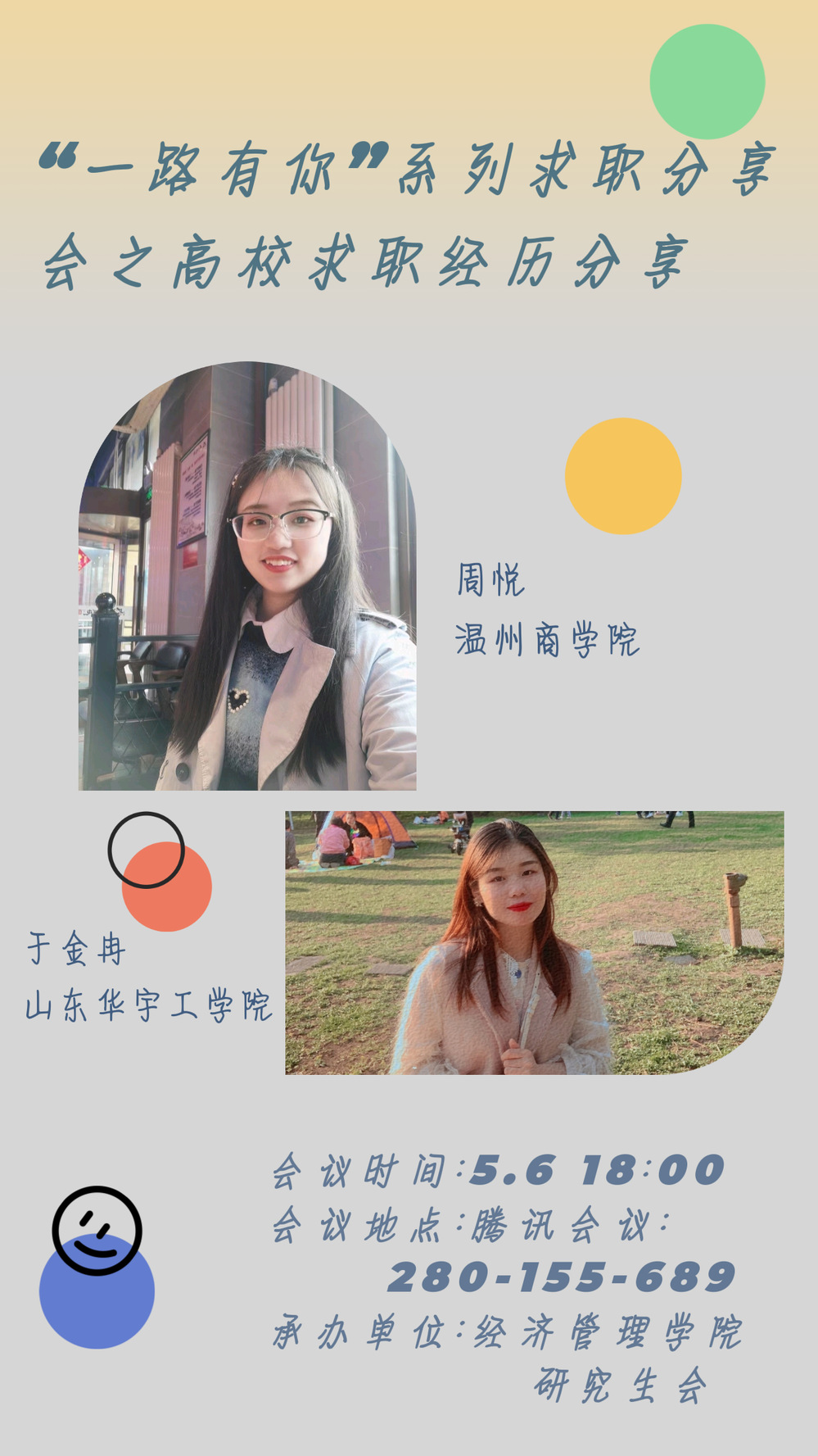 公司充分发挥朋辈引领作用,特邀陈雅文、郭晶晶、焦亚楠做“研”途分享,邀请就业先锋陈楼、于金冉、周悦做求职分享。他们将考研与求职过程中遇到的困难、走过的弯路、学到的技巧进行分享,以“朋辈”的感同身受来“职”引大家做好规划,帮助即将就业学子消除了诸多在毕业去向和考公考研等方面的疑惑,使得同学们进一步了解了如何选择不同行业和岗位,掌握了考公考研方面的笔试面试技巧,进一步掌握了在求学道路上的心态调节方法,对未来的备考准备和求职方向也有了更加清晰明确的计划。