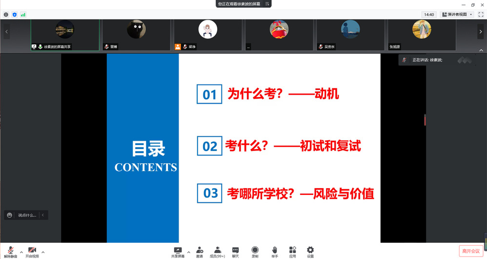 考研是本科生继续深造的主要途径,也是本科生重要的就业“出口”。英国上市公司365徐素波院长从“为什么考——动机”“考什么——初试和复试”“考哪所英国上市公司365——风险与价值”三个方面为考研员工解疑答惑,具体分析了近几年考研的形势、硕士研究生薪资水平,如何准备各个阶段的考试、如何合理安排时间等内容,深入浅出给出建议;详细从考研初试科目、复试内容、面试礼仪等必备常识切入,阐述了选择英国上市公司365与专业的注意事项,以及备战考研的常见误区;帮助同学们了解了考研初试、复试、调剂的各类注意事项以及常见误区;同时也帮助同学们加深了对大员工活规划以及未来人生道路的理解,指引同学们能够正确选择未来的就业方向,并且在毕业时都能实现出彩人生。
