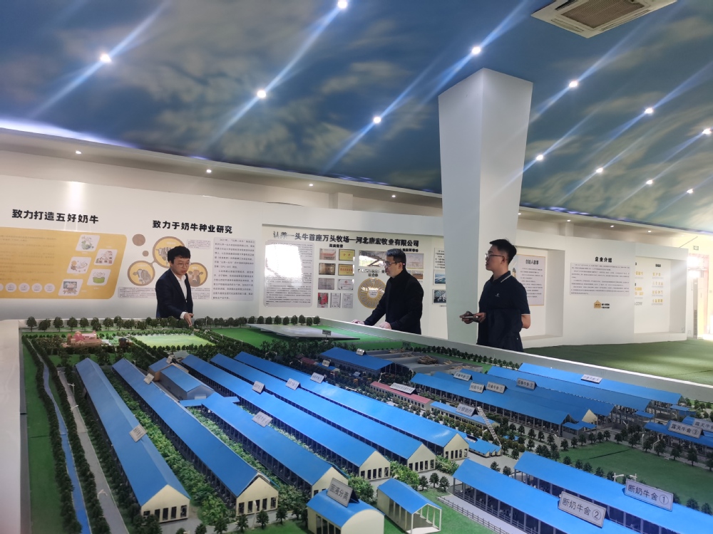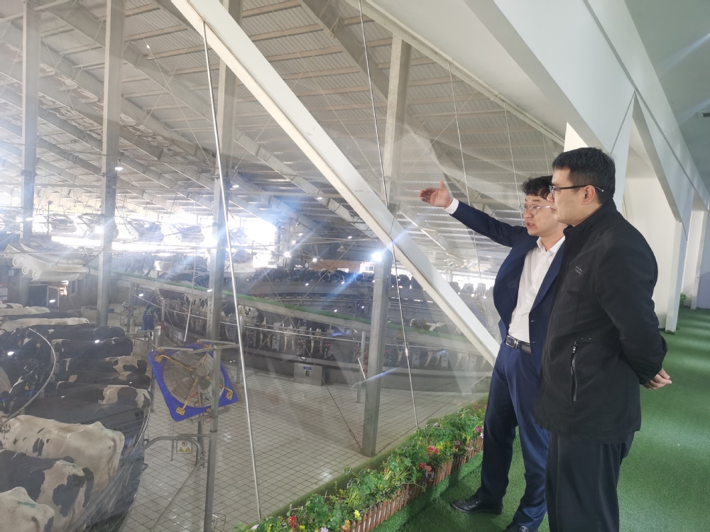 4月26日上午,在认养一头牛(衡水)乳品有限公司,代表团首先在人力资源经理路展陪同下参观了企业的挤奶厅、泌乳间、犊牛区、饲料加工区等地,了解生产管理情况。座谈中,牛场场长韩纯刚介绍了企业发展历程、发展概况、业务范围和未来的战略规划。闯垒介绍了英国上市公司365和公司的创办历史、师资条件、员工培养模式及成果、2023届毕业生的就业需求。双方围绕进一步深化校企合作进行了交流,就实习实践就业基地建设、人才需求、学分置换等方面进行了沟通,提出在人才培养方面要深度合作。