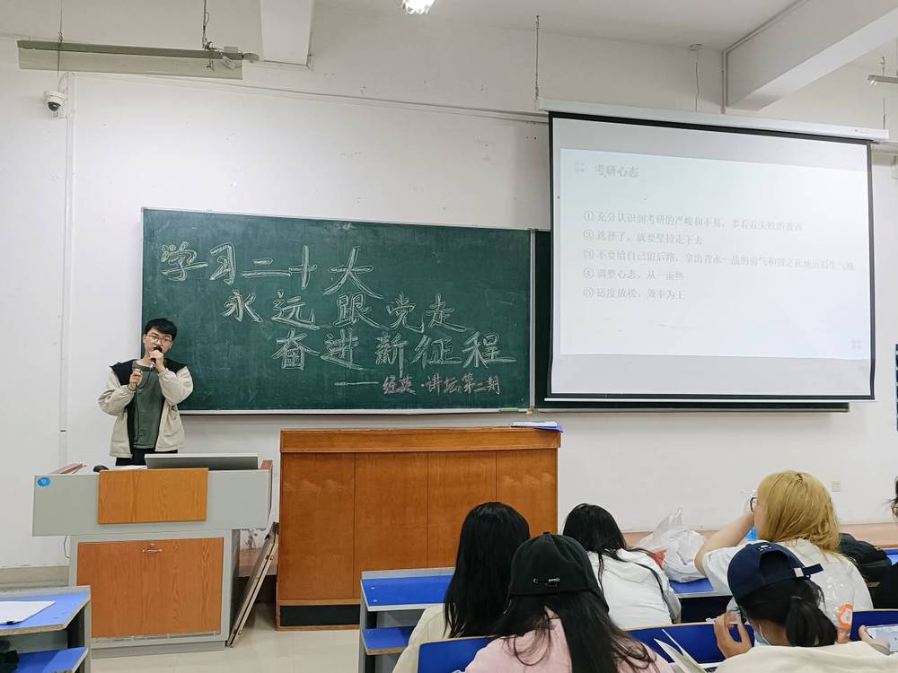 闻强龙从如何确定考研目标、如何增强考研信心、如何制定复习计划等方面分享考研成功的经验,他的备考经验给正在备战考研的学子树立了信心,坚定了目标。张威威从目标设定、大学规划、如何培养学习兴趣三个方面与同学们分享自己的大员工活,让大家对推免研究生政策有了更加深刻的了解。