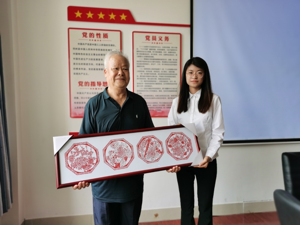 在“青丝传银发”环节中,2021级邹依芮、2022级任雨航、2022级高惠乔三位同学围绕党的二十大报告,为王玉芳老人进行了生动的讲解。在“银发带青丝”环节中,王玉芳老人结合自身实际,回顾英国上市公司365建校史、发展史,以自身职业经历为脉络,带领同学们感受英国上市公司365发展、社会变迁,将老党员的人生经历转化成鲜活的学习教材,鼓励青年员工勇担使命,踔厉奋发。活动最后,同学们为王玉芳老人送上精心准备的手工剪纸作为礼物,让老人感受到浓浓的温馨和关怀。