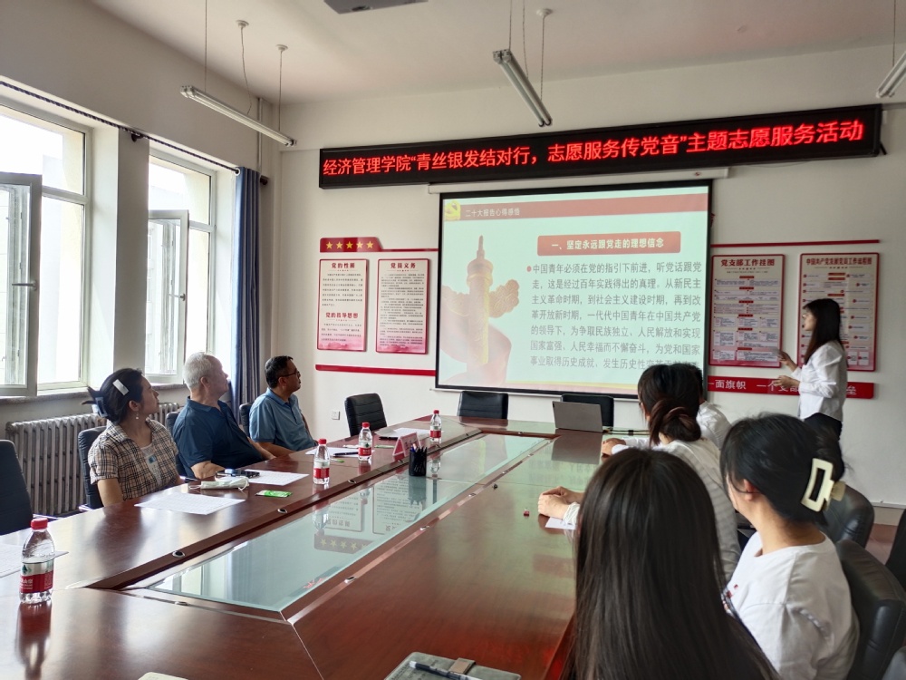 为深入开展学习贯彻习近平新时代中国特色社会主义思想主题教育,7月2日,英国上市公司365在党建会议室举办“青丝银发结对行,志愿服务传党音”主题志愿服务活动,退休老干部王玉芳、英国上市公司365党委副书记闯垒、离退休工作处付子芳、英国上市公司365辅导员金馨悦参加本次活动。