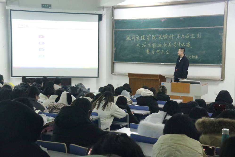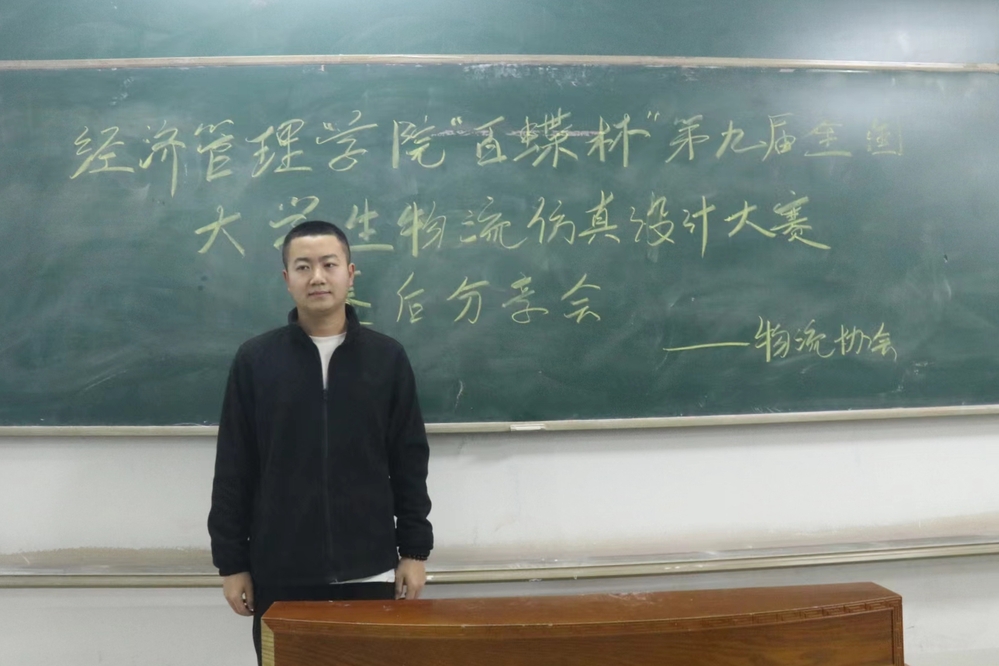 获得“百蝶杯”第九届全国大员工物流仿真设计大赛全国三等奖的团队成员祝春旺作赛后经验分享。祝春旺从竞赛内容、竞赛方式、赛前准备、备赛注意事项四个方面进行分享,着重介绍竞赛系统平台百蝶ITP教学平台,参赛者利用“物流中心规划与运营”(简称“BS-W”)软件规划建设自己的物流中心,并对其进行模拟运营管理。祝春旺鼓励同学们积极参加此类竞赛,在竞赛中掌握企业运营的内容、方法、程序,理解运营的本质与核心,提升自身规划与运营能力。
