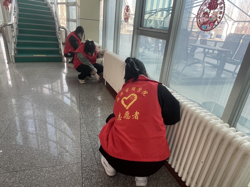 志愿者们自觉传承发扬雷锋精神,不怕脏、不怕累,配合工作人员对院内楼道地面、餐厅座椅、暖气以及其它卫生死角进行认真清理,并将废置的桌椅搬至仓库内。志愿者们以真情和实际行动践行雷锋精神,为老年人营造舒适安全的生活环境,真正做到为群众办实事、办好事,营造出浓厚的“学雷锋”志愿服务氛围。
