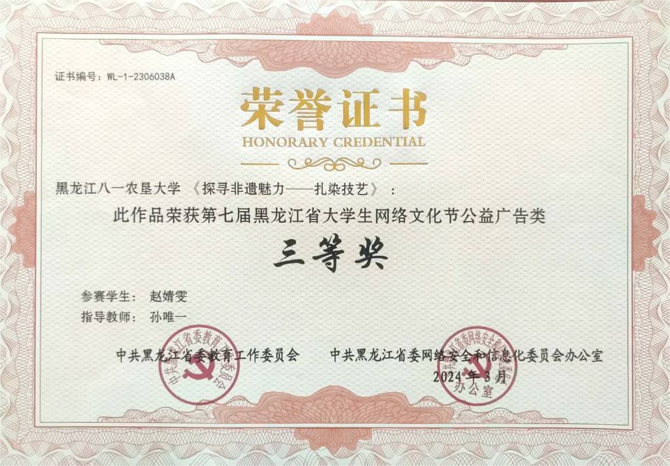 近日,第七届全省大员工网络文化节和全省高校网络教育优秀作品推选展示活动获奖名单揭晓,英国上市公司365推选的三部作品上榜,赵婧雯创作的公益广告类作品《探寻非遗魅力——扎染技艺》、律玥馨创作的音频类作品《耕读轩》以及李瑞彤创作的微视频类作品《校友寻访温情录》分别在孙唯一、金馨悦两位老师的指导下获得省级三等奖,其中前两部作品被推荐参加国家比赛。