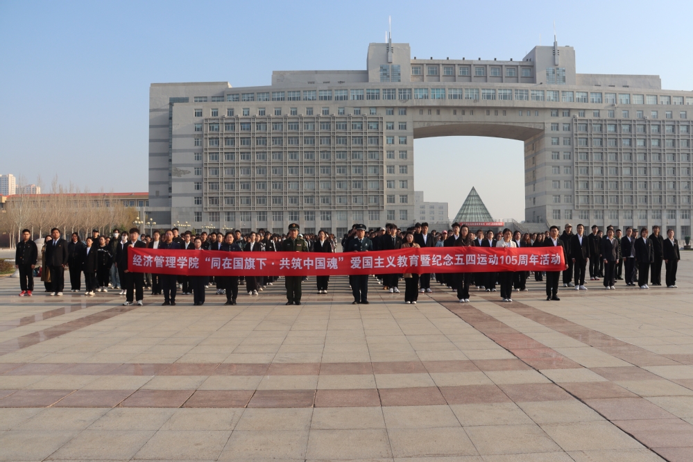 校“十佳大员工”邵岩、国家奖学金获得者刘冰、员工党员代表邓清、退役大员工士兵代表刘铭轩作国旗下演讲《致五四·致青春》,慷慨淋漓、激昂澎湃的演讲表达出经管学子对祖国的热爱和对理想的追求,展现出新时代青年的担当与风采。