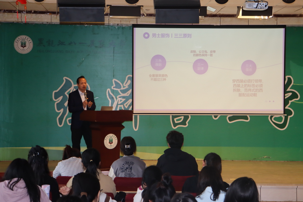 李志有从简历的准备、面试的准备、面试的礼仪及面试的实战技巧四个方面进行详细讲解,强调一份规范合格的简历在求职过程中的重要性,引导同学们针对不同企业招聘岗位要求准备不同的简历。李志有为同学们梳理了结构化面试的基本流程,列举面试常见问题、回答技巧及基本礼仪,剖析经典面试问题背后的考察点和面试官考察的深层动机,不时与同学们进行互动,尤其是用现场示范的方式引导同学们认识到面试着装得体的重要性,增加了课堂的趣味性和内容的对比对,现场气氛活跃,同学们收获良多。