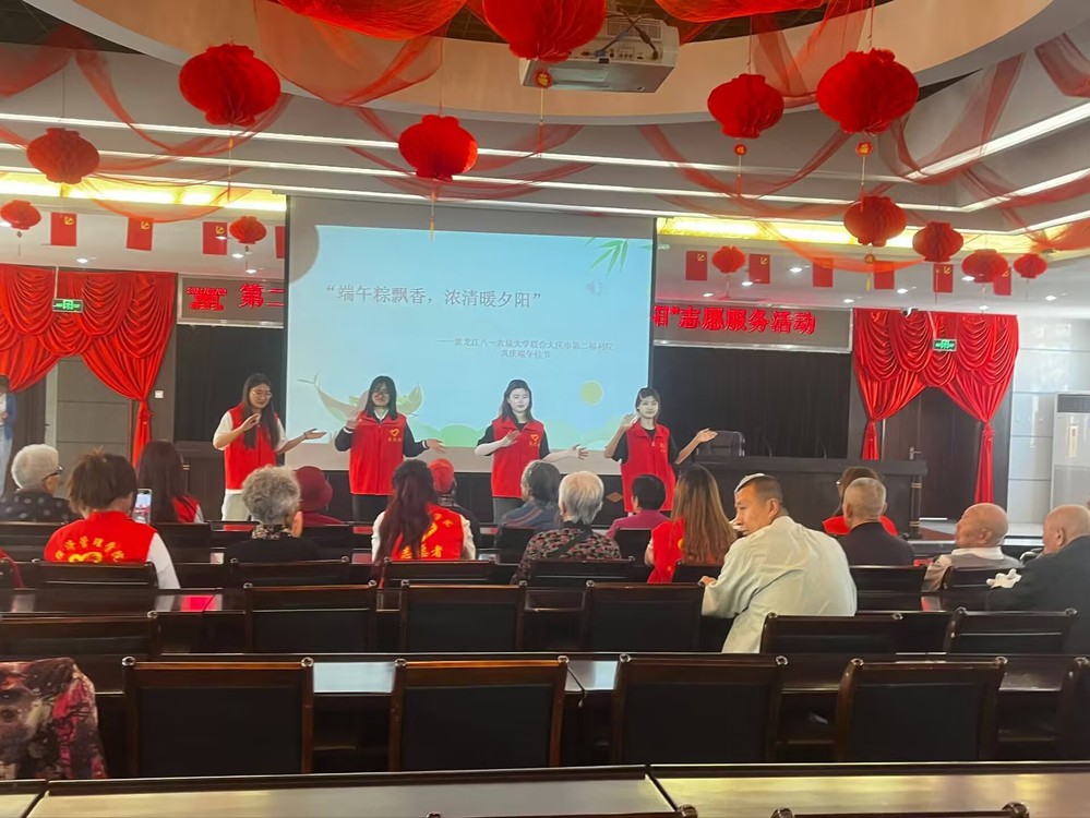 志愿者们通过PPT展示,向老人们介绍了端午节的由来、习俗,在节奏欢快的手势舞《过端午》中,帮助老人们加深对端午节民俗文化的认识。一曲《明天会更好》将活动推向高潮,志愿者们在嘹亮歌声中唱响未来,表达对老人们的祝福,为老人们送去温暖和欢乐。
