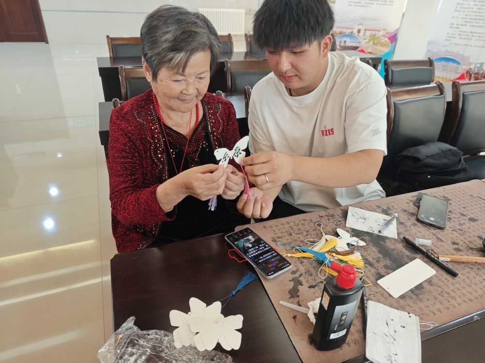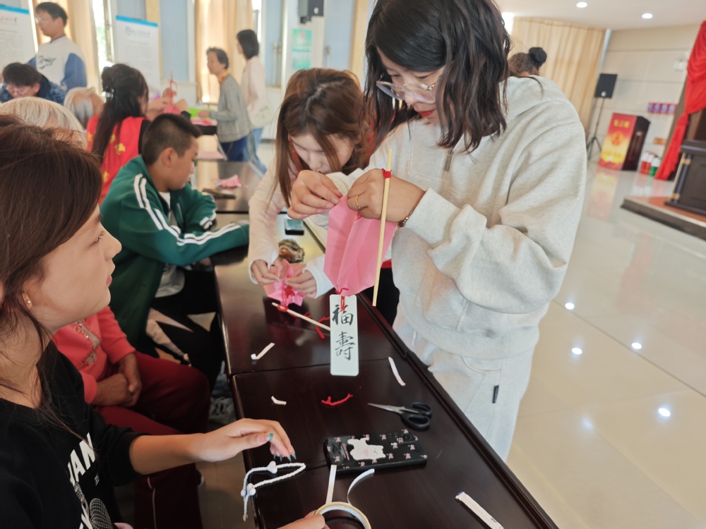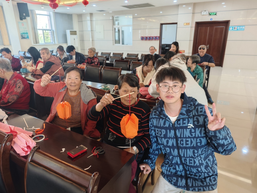 志愿者与老人们一起动手制作花灯,深切体会非遗魅力,不起眼的手工材料在大家的默契配合下变成了一盏盏精致的花灯,一份份美好祝福写在书签上、挂在花灯上,最暖“志愿情”托起了最美“夕阳红”。