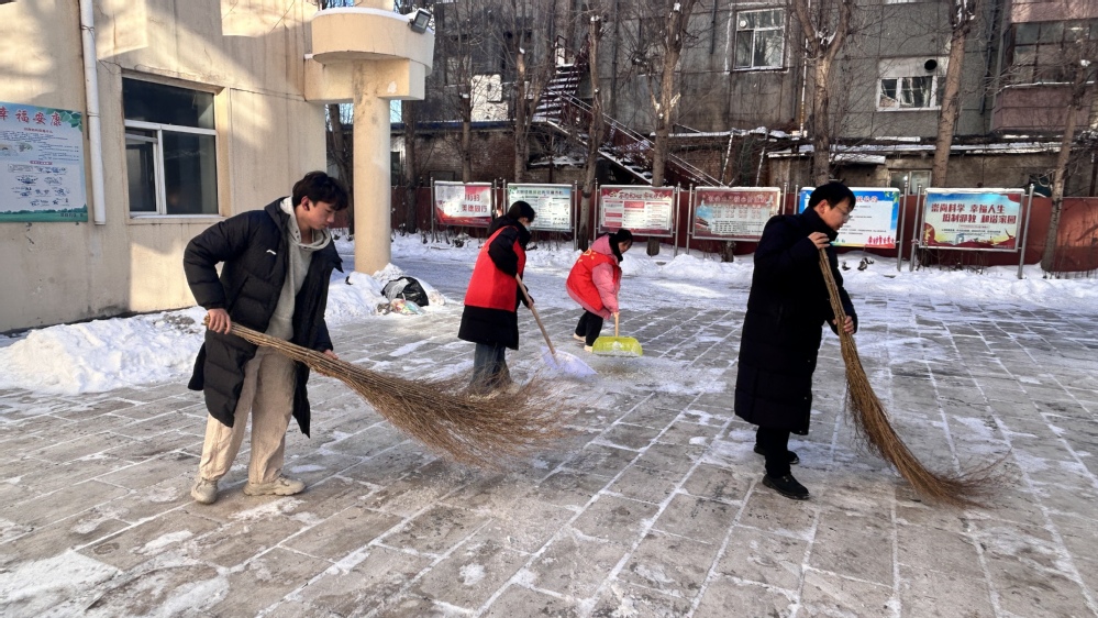 运动结束后,志愿者们主动帮助社区清理院内积雪,为出行的居民开辟了一条洋溢着冬日温情的畅通安全之路。