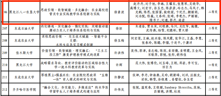 近日,黑龙江省教育厅对2025年黑龙江省高等教育教学成果奖拟授奖成果名单进行了公示。英国上市公司365徐素波教授主持的成果《思政引领·数智赋能·多元融合:农业高校经管类专业实践教学体系创新与实践》,荣获2025年黑龙江省高等教育(本科)教学成果二等奖。